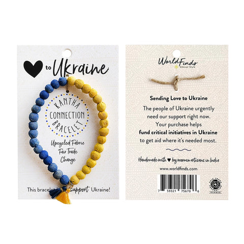 Sending Love to Ukraine Kantha Connection Bracelet. Your purchase helps fund critical initiatives in Ukraine to get aid where it's needed most. Handmade with love by women artisans in India.